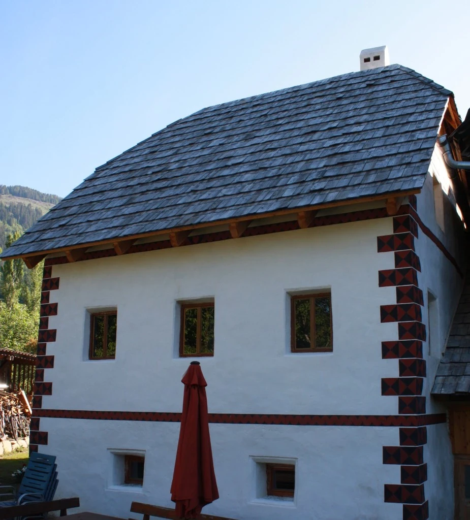Sanierung eines historischen Gebäudes auf Niedrigstenergie-Standard mittels Strohballendämmung und Kalk-Trassputzfassade